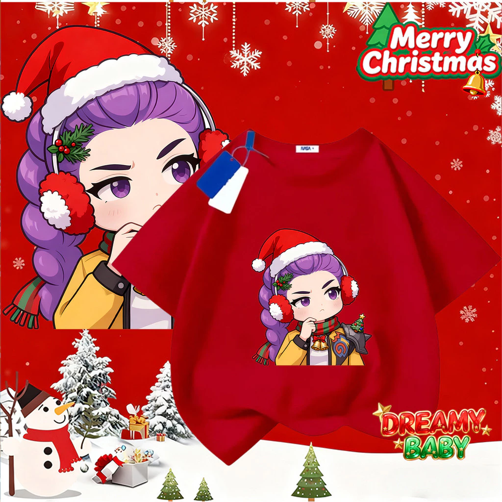 Sản Phẩm Khuyến Nghị: COD✅ (Hồ Chí Minh)DREAMY BABY Áo Thun Đỏ Chủ Đề Cô Gái Dễ Thương Tóc Tím Phiên Bản Q Giáng Sinh