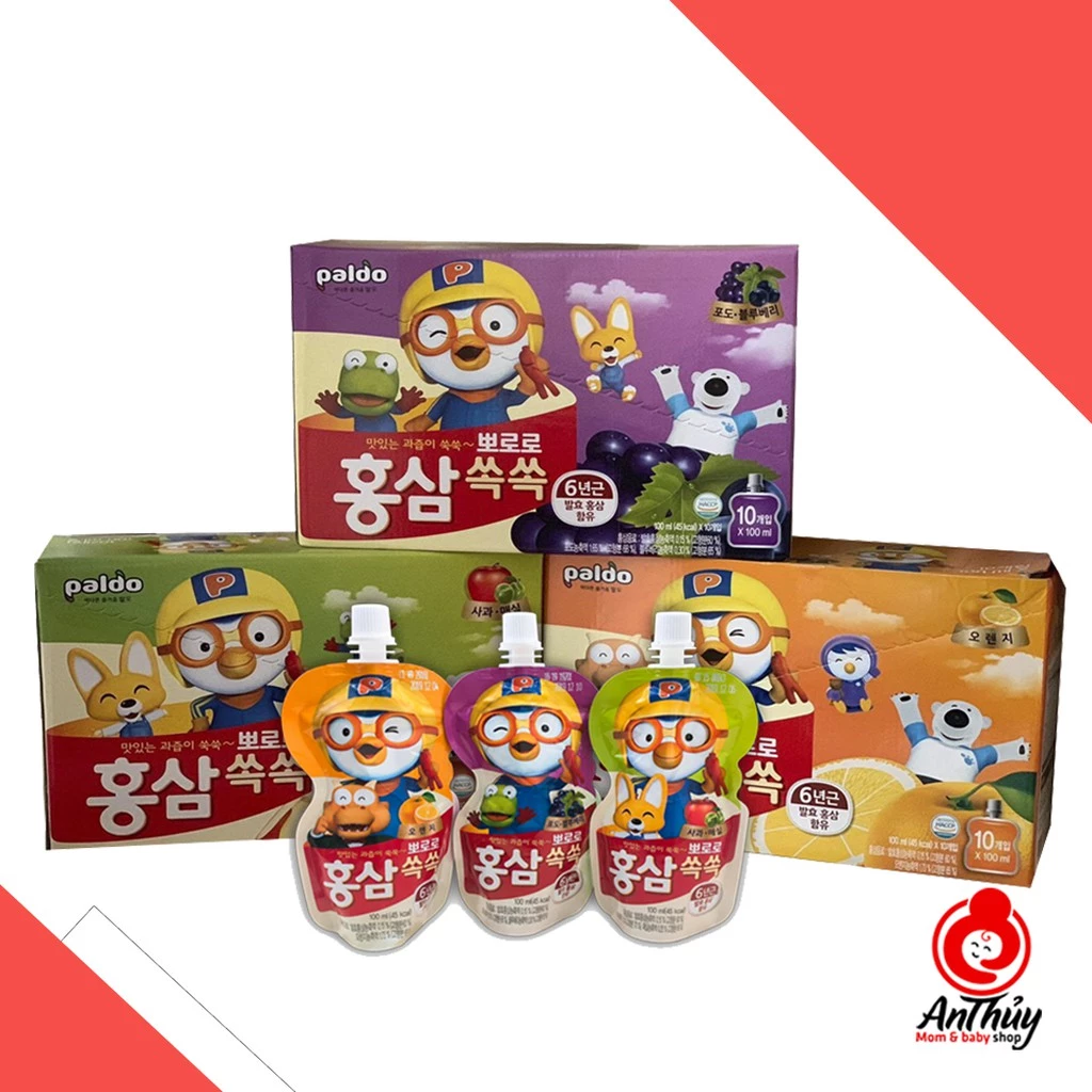 Nước trái cây Pororo Hàn Quốc có nhiều hương vị khác nhau, phù hợp với các độ tuổi khác nhau. Sản phẩm được đóng gói trong các túi nhỏ 100ml, rất tiện lợi cho cha mẹ khi cho con đi học hoặc đi chơi.