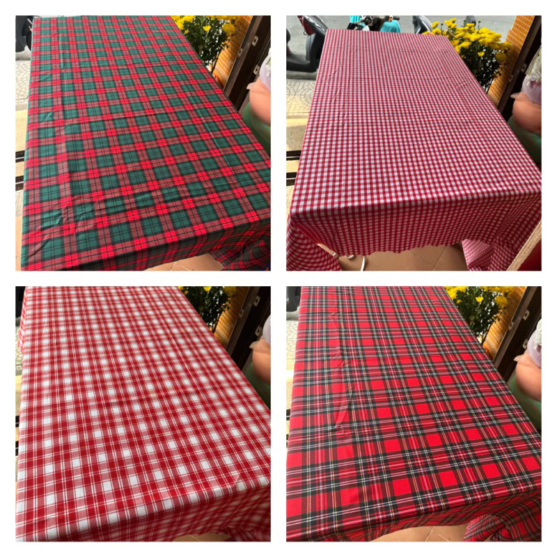 - Màu sắc: Màu sắc khăn bàn nên phù hợp với chủ đề trang trí của buổi tiệc. Sọc caro đỏ, xanh lá, hoặc kem là những màu phổ biến.