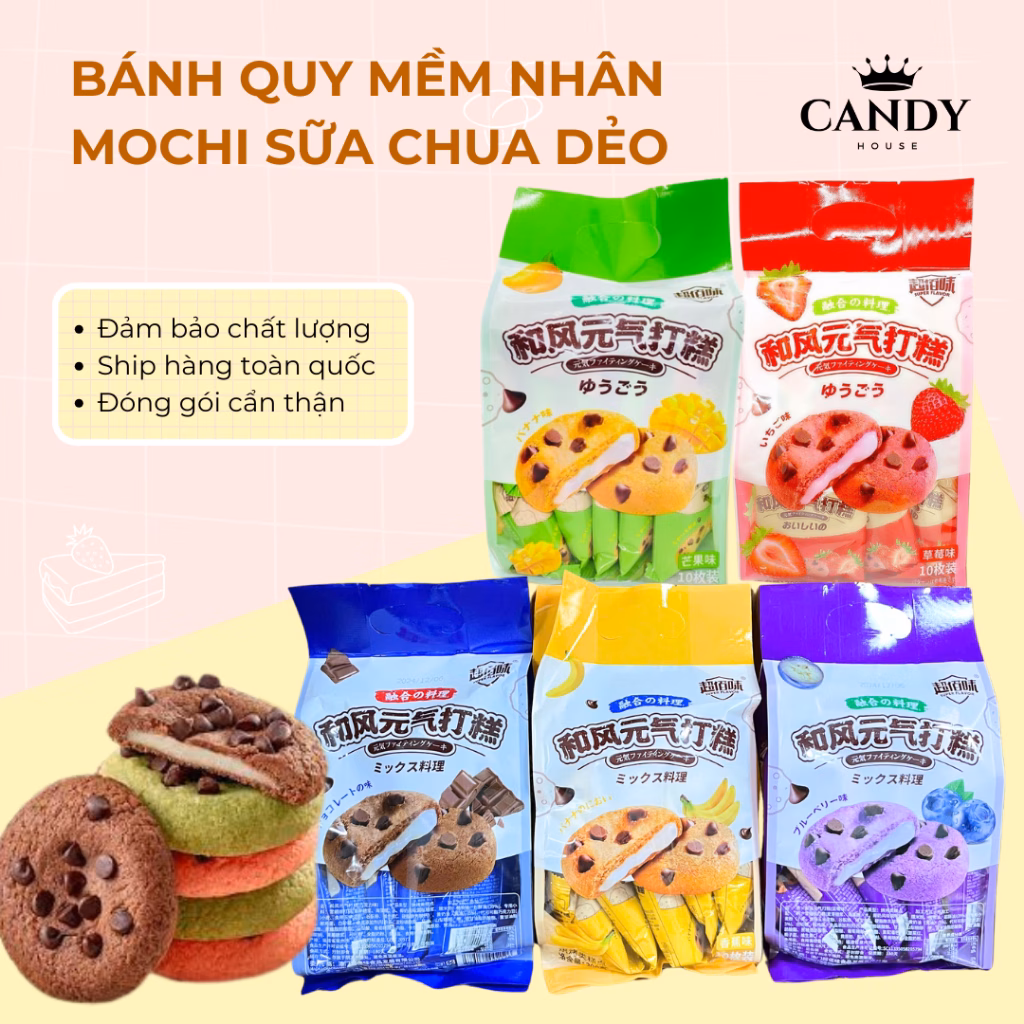 Ưu điểm của Bánh Quy Mềm Socola Chip Nhân Mochi Dẻo 5 Vị Dâu/Chuối/Socola/ Xoài/Việt Quất Bịch 10 Cái 300g