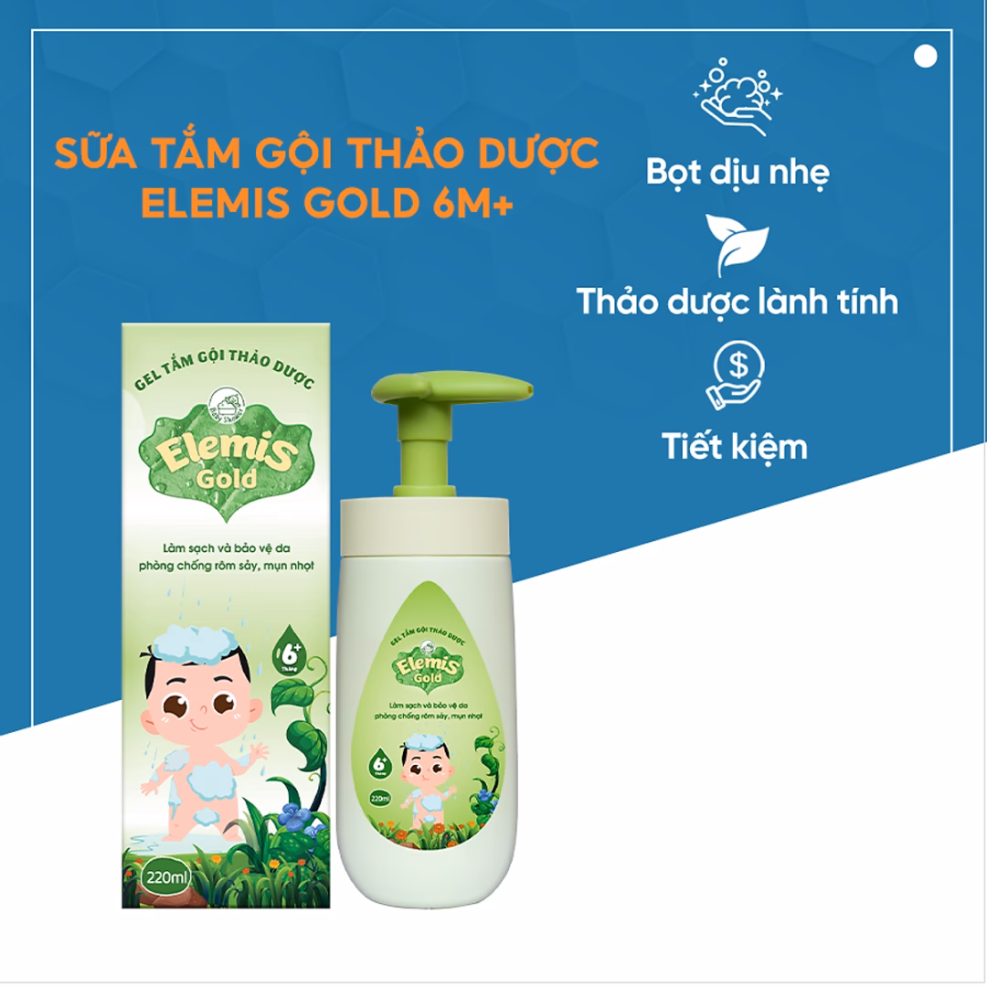 Elemis Gold là một trong những sản phẩm sữa tắm gội thảo dược cho bé được nhiều phụ huynh tin dùng. Sản phẩm này có công thức độc đáo với các thành phần tự nhiên như dầu argan, và vitamin E giúp nuôi dưỡng và bảo vệ da và tóc của bé một cách nhẹ nhàng.