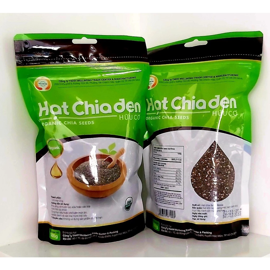 🔥 Hạt Chia Hữu Cơ Wellbeing / Bao bì xanh / Hạt Chia Hữu Cơ 100% chất lượng siêu sạch đen đẹp đang giảm giá!