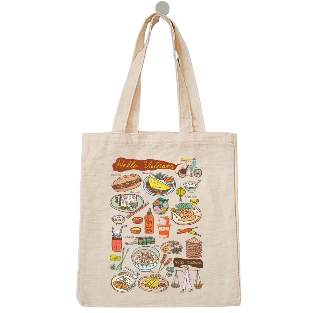 🔥 Túi tote Ấm Thực Việt Nam Túi Quà Tặng Du Lịch Lưu Niệm Túi vải Natee 33x38cm có khóa kéo đang giảm giá!